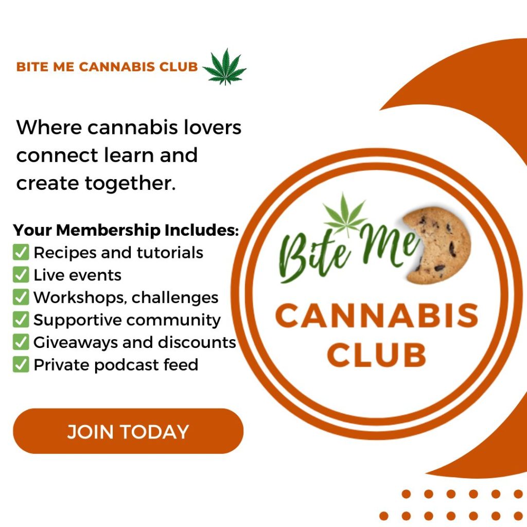 Hello friends! I’m excited to introduce to you the Bite Me Cannabis Club, a community designed to connect cannabis enthusiasts, facilitate learning, and encourage creativity in cooking, growing and consuming cannabis. If I’m being honest, I started the community because podcasting can be lonely and cannabis is better with friends. If you’re ready to get started, scroll below.