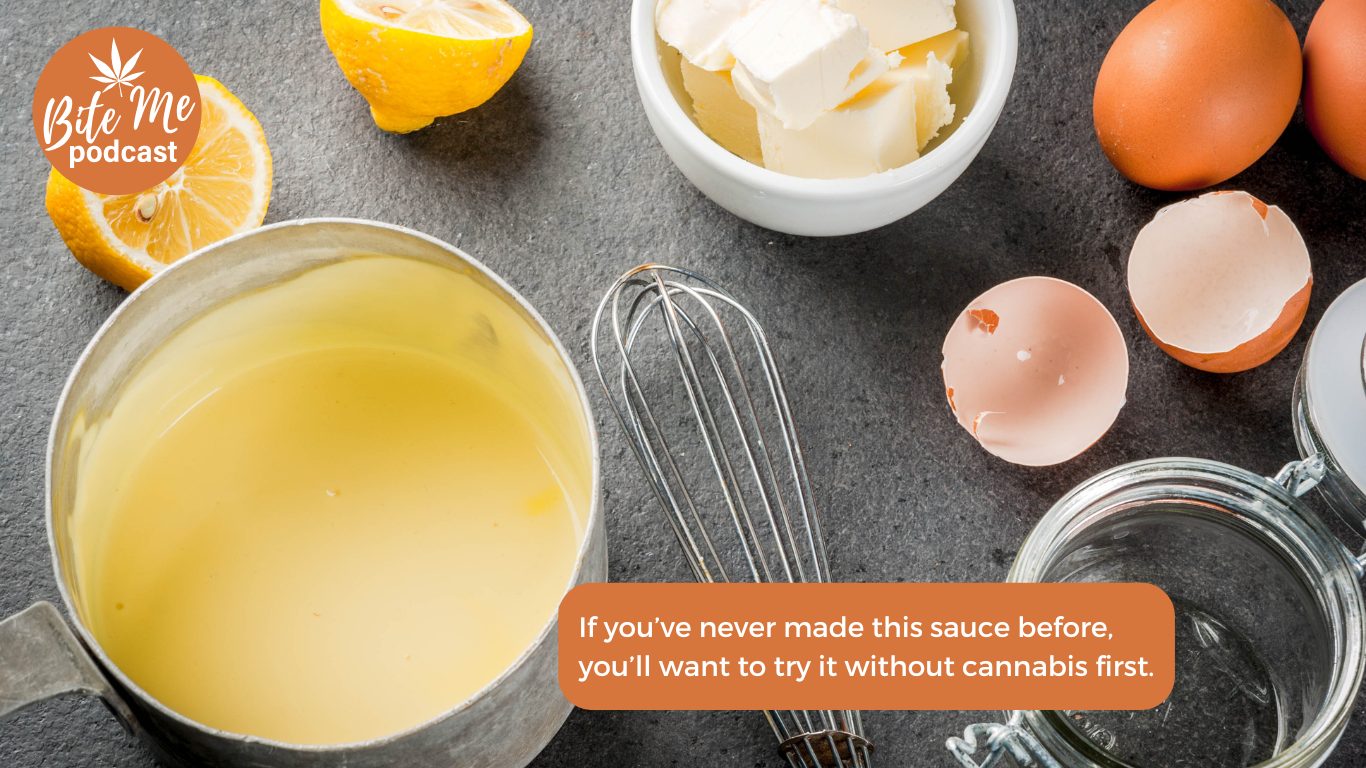 Margaret 00:06:20 Hollandaise sauce, as he says, is one of the five classic French mother sauces. Traditionally a brunch star over eggs Benedict but equally incredible on asparagus, fish or steak. This recipe makes it approachable at home, with the option to infuse either THC or CBD, or a balanced mix of both. Now, as I learned trying to create this recipe, it turns out that one of five French mother sauces is a little trickier than it would first seem. And the first time I made it, my sauce did not work out. So let me remind you that if you're doing this one for the first time, don't use infused ingredients. Because guess what I did? I used a nice CBD infused butter for that particular first trial and the sauce broke. I wasted all that ingredient and you kind of waste the ingredient. Regardless, I'm not really sure what you can do with a broken hollandaise sauce. And when you when you're asking like. But, Mark, what does it mean for a sauce to break when you see it? You'll know, because we've all probably had an eggs Benedict at some point, or some kind of food with a hollandaise sauce on top, which is essentially egg yolks, lemon and butter with a little bit of salt or cayenne pepper.