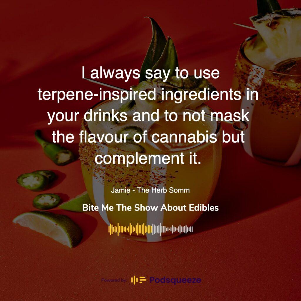 Jamie advises using terpene-inspired ingredients, complementing the cannabis flavor, and creating infused pantry items for home mixologists.